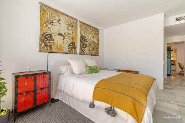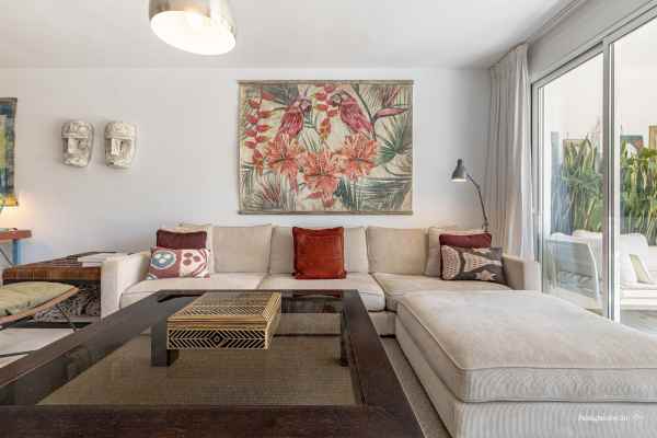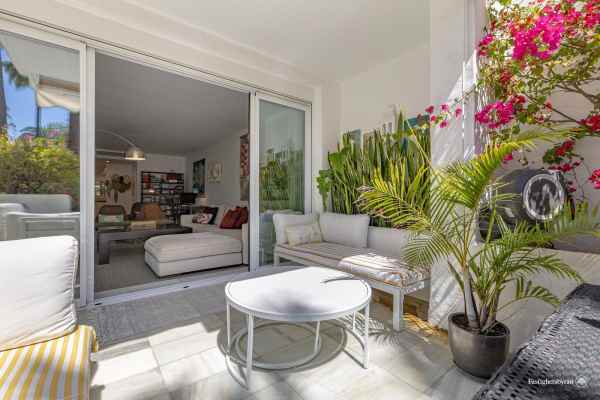 Alcazaba Beach magnificent apartment with large terrace, garden, swimming pool and partial views to the Mediterranean, in exclusive beachfront urbanization, with direct access to the beach, beach bar and restaurant on site, communal parking, 24 hour security, beautiful tropical gardens very well kept, 6 swimming pools (one heated), tennis and paddle courts. It is located on the outskirts of Estepona, with all kinds of services around and only 5 minutes drive from the marina and 10 minutes from Puerto Banus.