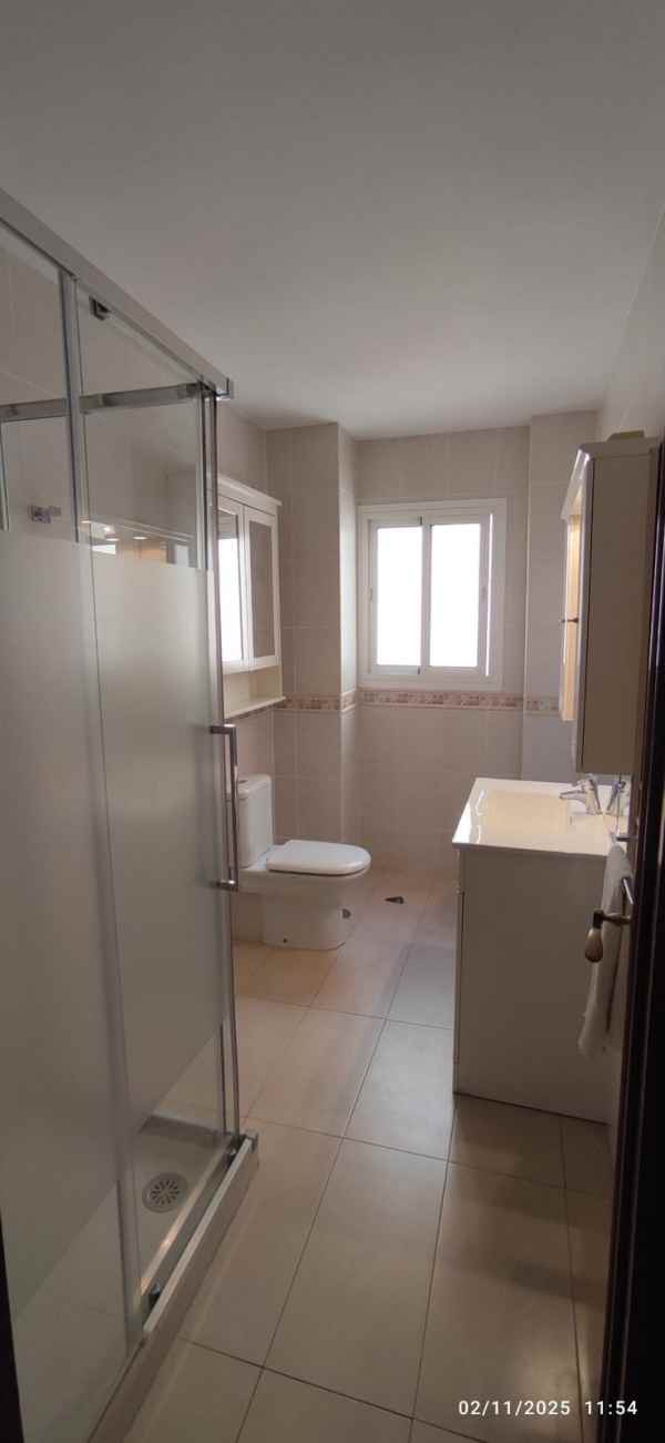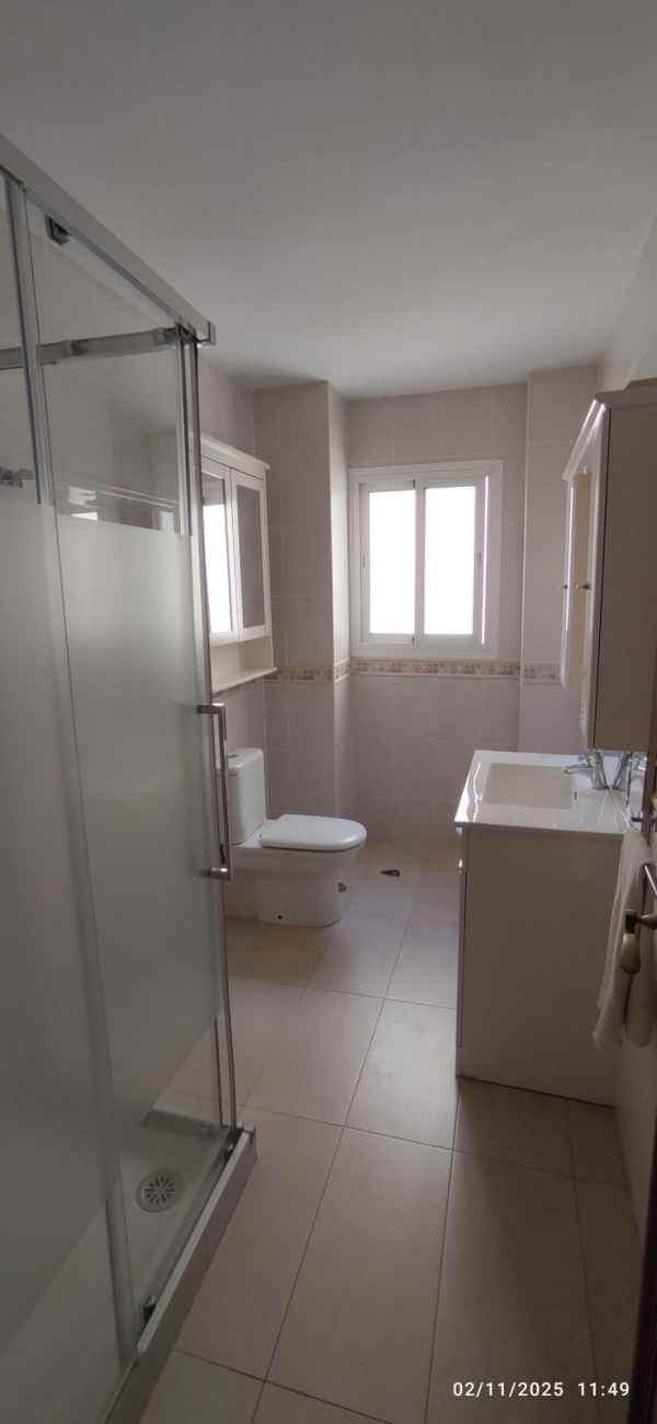 Spanning 104 m² of bright, well-distributed space on the third floor with convenient lift access and desirable south, east, and west orientations for abundant natural light, this fully exterior residence offers a functional layout: a welcoming living-dining room, an independent kitchen, three generous bedrooms with fitted wardrobes, two modern bathrooms, a covered terrace, and a balcony—perfect for al fresco relaxation or entertaining. Additional perks include a shared storage room, enhancing everyday practicality. The building features a communal swimming pool, adding to the appeal for year-round enjoyment.