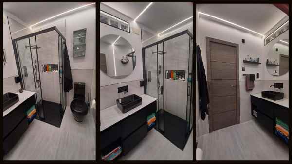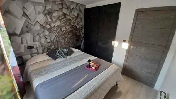 The bedrooms are quiet with pleasant light and have space for both a bed and bedside tables. There are two bathrooms, one of which is equipped with a toilet, sink and shower with glass walls.