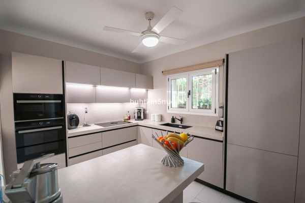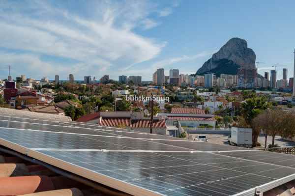 Thanks to its south-facing orientation, the villa enjoys sunshine all day long. It offers peace and privacy while being perfectly located: the beach is just 700 metres away, with shops, restaurants and the town centre within walking distance.~The property offers 318 m2 of built-up area on a flat 824 m2 plot, featuring a Mediterranean garden, private swimming pool, jacuzzi and sunny terraces with breathtaking sea views.~Inside, the villa has 4 bedrooms, 3 bathrooms, a bright living area with direct outdoor access, a modern kitchen and a separate office. Fully renovated and equipped with underfloor heating, air conditioning, solar panels and a garage with charging point.~A warm and elegant home where sun, views and comfort come together — ideal as a permanent residence or a second home on the Costa Blanca.